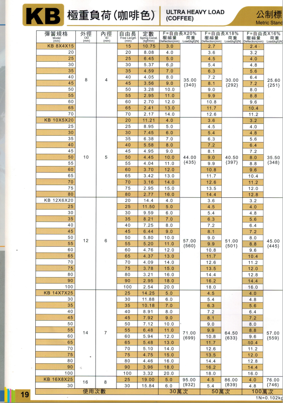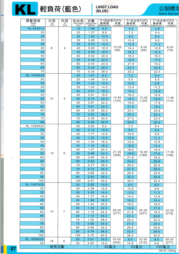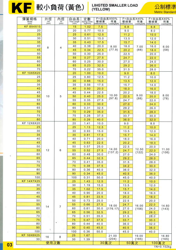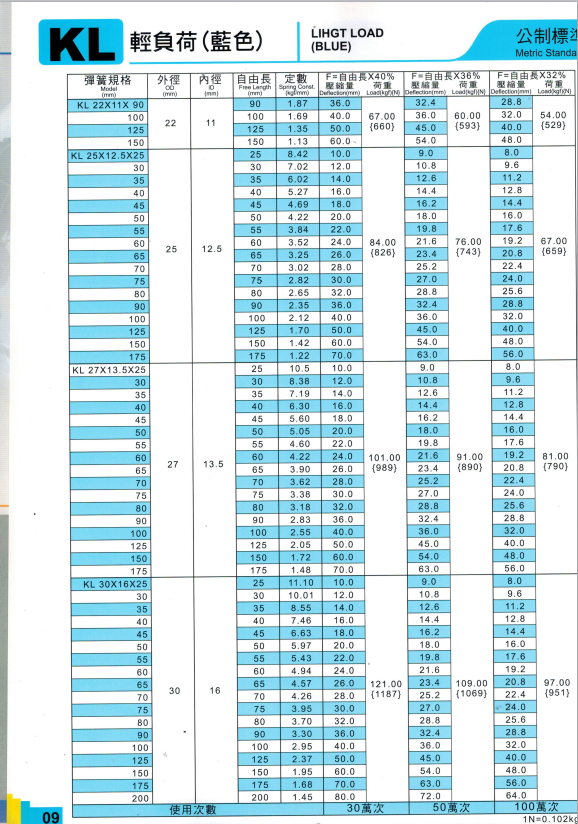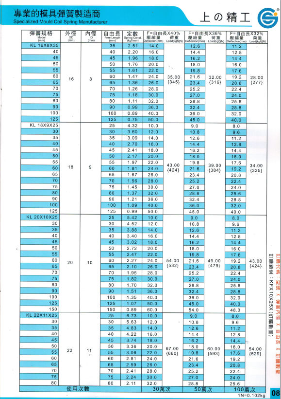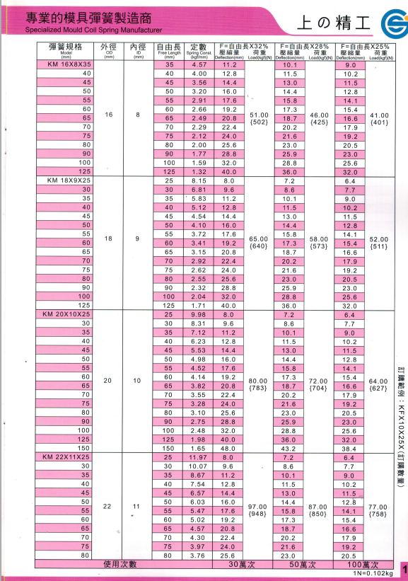上精工模具彈簧規(guī)格書(產(chǎn)品大全)